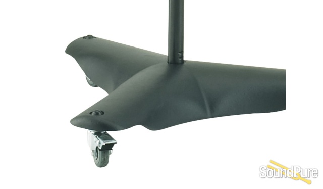 10 kg cast metal base, low centre of gravity for high level safety with 3 lockable castor wheels. Rod combination extends to over 2 m with additional locking mechanism. Extendable boom arm with a 3 kg counterweight and 5/8" connecting thread. Additional mini boom arm with 5/8"- and 3/8"- connecting thread, fully adjustable regardless of the position of the main boom arm, e.g. to use with studio microphones.