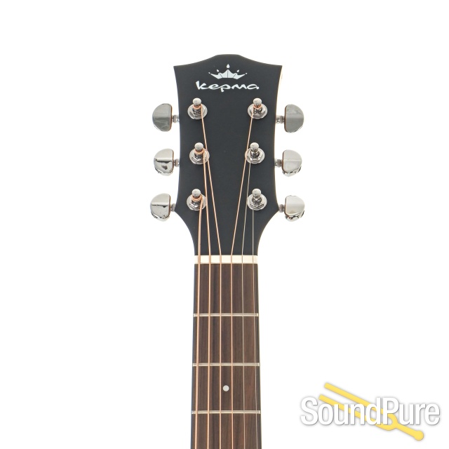 Did we mention that this guitar has a torrefied solid top? The proprietary Kepma Torrefication Process uses a combination of controlled heat, humidity and pressure over a period of time to draw the moisture, oils and sap from the cellular structures in the wood to the surface, which is then sanded off. This process adds additional strength and stability to the tops while making them less reactive to atmospheric condition changes. Every solid Kepma top goes through this highly controlled process and it yields tops that react better to string vibration, are more “lively” and definitely more stable.