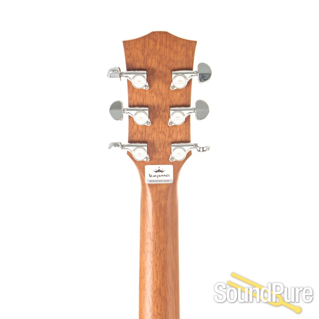 Did we mention that this guitar has a torrefied solid top? The proprietary Kepma Torrefication Process uses a combination of controlled heat, humidity and pressure over a period of time to draw the moisture, oils and sap from the cellular structures in the wood to the surface, which is then sanded off. This process adds additional strength and stability to the tops while making them less reactive to atmospheric condition changes. Every solid Kepma top goes through this highly controlled process and it yields tops that react better to string vibration, are more “lively” and definitely more stable.