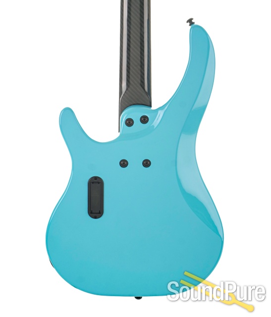 An Aqua Klos Apollo Bass with A Carbon Fiber Neck & Pickguard!