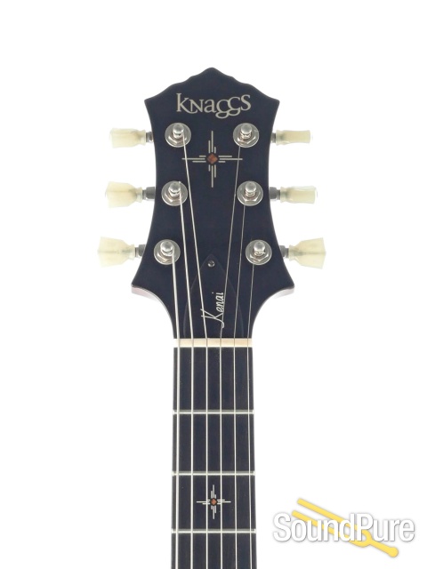 Now this is a stunner! Spalted maple paired with lapis inlays will definitely get some heads turning. This guitar isn't all show though! Knaggs produces incredible instruments and this Kenaii II is no exception. The smooth clear sound from the Seth Lover pickups perfectly complements the warmth and midrange of the mahogany body. The neck plays smoother than silk as well! This is a truly unique find and you'd be wise to act quickly.