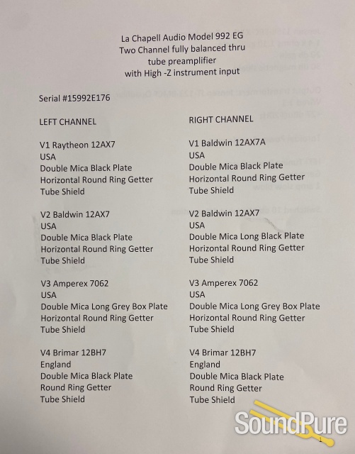 If you're after the best of the best in dual mono tube preamplification, you're looking for the LaChapell 992EG! Creamy, rich, round, yet detailed - the 992EG is everything you want and expect in a world-class tube preamp! This unit has been professionally modified, (including tube biasing) with spec sheets shown in photos. In Used, Very Good to Excellent Condition.