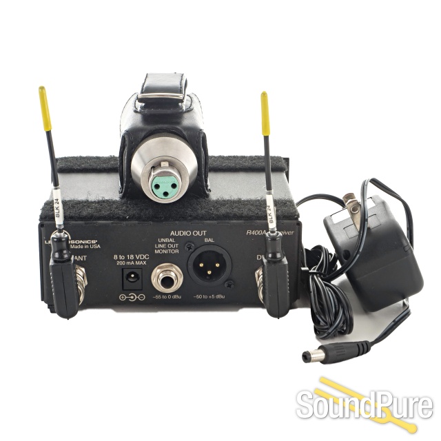 This listing includes both the Lectrosonics R400A UHF Diversity Receiver (Frequency Block 24), as well as the HM (Block 24, HMM version) Transmitter. In Used, Very Good to Excellent Condition