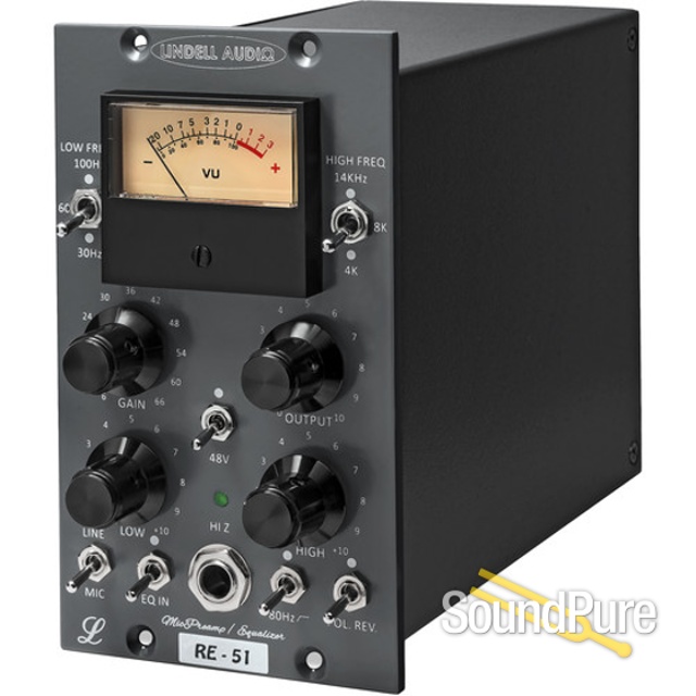 The RE-51 is a preamp and EQ module for the 500-series built around the acclaimed OPA1731 vintage opamp. Usual perks such as polarity reverse and phantom power are easily switchable, but with recording workflow convenience in mind Lindell have also included stepped pots for each rotary controls to ensure ease of recall between different vocalists or sessions.