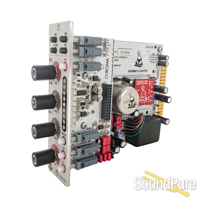 Chroma is the world's first 500 series audio processor with Twin Tone-Amp architecture and the ability to accept real analog plugins for expanding its feature set. Answering the call for a single channel Silver Bullet, Chroma delivers with its twin topology (A or N) line processor and mic amp, but adds an exciting twist - an analog plugin slot accepting Colour Modules. This feature allows additional processing and effects to be inserted into the signal path and mixed with Chroma's classic 'A' or 'N' inspired MOJO Amps.