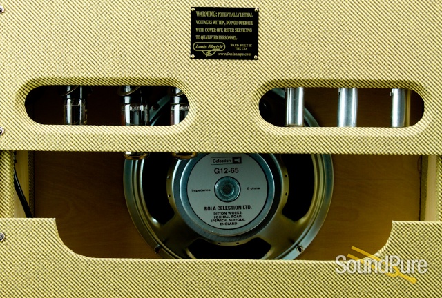 The Tremblelux’s single Celestion G12H-30 is housed in a dovetail joint, pine cabinet in a baffleboard design. The cabinet’s full size produces a wide bass response that you would not expect in a 27 watt amplifier.