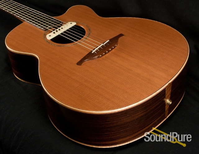 The cedar and rosewood combination along with the large "O" body size make for a huge sound. The bass frequency is present without getting "boomy" and the mids and highs sparkle with lush overtones that Lowden is famous for.