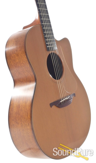 This Lowden F model is warm and sweet with a nice softness that will remind you of pre-war guitars but with Lowden's signature sound always present. The F is a very comfortable medium sized body that most players will enjoy playing for longer sessions and you get a sound that has some characteristics of larger body instruments (great bass response) while also having a bit of natural compression that helps keep things balanced. This model would likely be listed as excellent if it were not for the small dings in the top near the bridge and is really playing great!