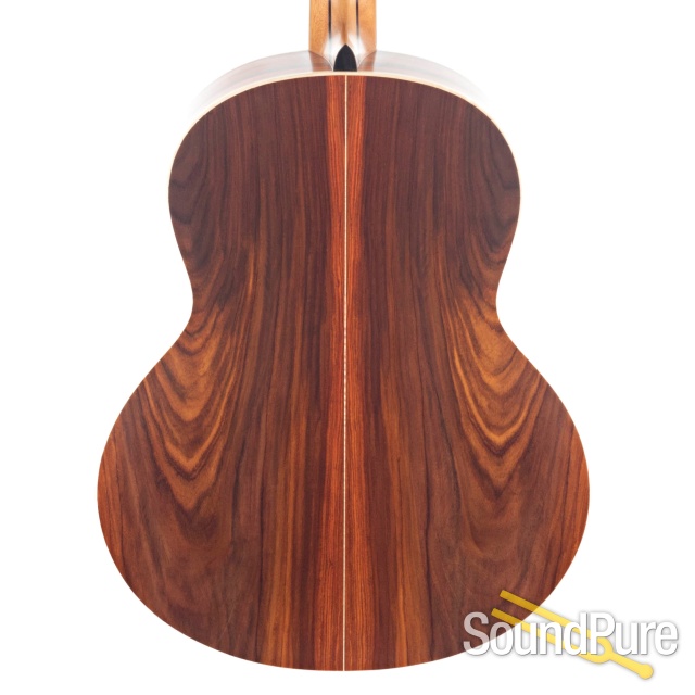 Prepare to be completely blown away by a truly superlative instrument. This is one of those rare cases where the aesthetic beauty of a piece truly matches up to its sonic power. Just look at that incredibly figured cocobolo! From a fiery orange to a deep crimson the back and sides of this guitar are just the sort that makes you want to hang it on the wall backwards! And the sound, oh the sound! We're at no loss for words: lush, expansive, dynamic, swirling overtones, rich fundamentals, and all wrapped in a playable, perfectly fit package! This might just be the one you've been searching for all these years!