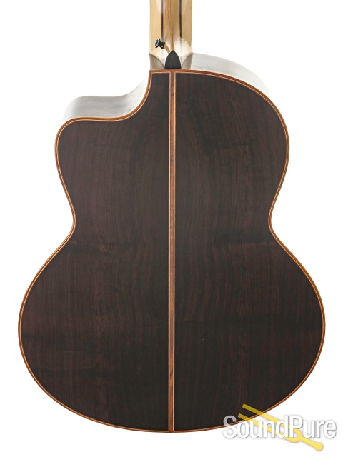 The Lowden F-50C is a breathtaking example of modern acoustic craftsmanship, built to deliver depth, balance, and extraordinary refinement. Its master-grade Adirondack spruce top pairs beautifully with African blackwood back and sides, producing a rich, piano-like low end, shimmering overtones, and remarkable clarity across the register. The GL Standard neck profile feels smooth and composed, while ebony appointments and elegant bindings reflect meticulous attention to detail. Powerful yet sensitive, this F-50C responds effortlessly to touch and dynamics. It’s a world-class, heirloom-level instrument and a serious long-term investment designed to inspire and mature gracefully for decades.