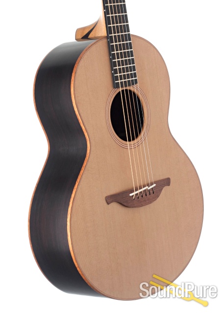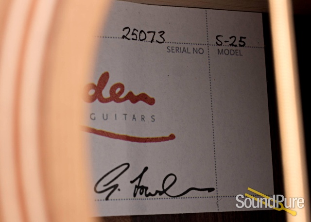 Lightly built but powerful, this S-25 is exemplary of George Lowden's handiwork. This gorgeous guitar's appointments are warm and literally woody: Check the rosette and purfling composed of sycamore, walnut, mahogany and rosewood, set against the high-grade cedar top and rosewood back and sides. The instrument's sound complements the visual aesthetic while contradicting its compact size. Focused bottom end, bright mids and ringing treble indeed make this a fabulous fingerpicking guitar, but the cedar top also possesses enough headroom to allow for plentiful clarity and balance for strumming. The slim, wide neck combines modern comfort with vintage feel, and its super-short scale and flat fingerboard makes expressive bends dreamily easy.