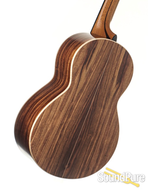 A Wee Lowden with a unique combination of Alpine Spruce and Chechen, and an Ebony fingerboard!