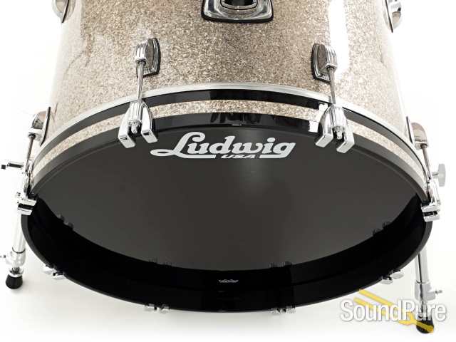 For years, Ludwig Classic Maple Drums have been the driving force and sound behind some of the greatest live music and modern recordings. Ludwig continues to keep this standard today with it's Downbeat 20 Drum Set. This augmented Downbeat is a 4 piece drum set in the classic Nickel Sparkle finish and it flirts between a jazz set and a rock set. It has a relatively small footprint and with the 14x20 bass drum, it packs up well in the car for easy transport. This set is great for smaller settings and venues but it can also hold it's own on a larger gig as well. The 45-degree bearing edges coupled with the thin 7 ply maple shells provide ample sustain and fullness regardless of where you play and the updated Atlas mounts will deliver you a strong and consistent setup time after time. Perfect for the professional musician on the go. This set is here on consignment and is in excellent condition.