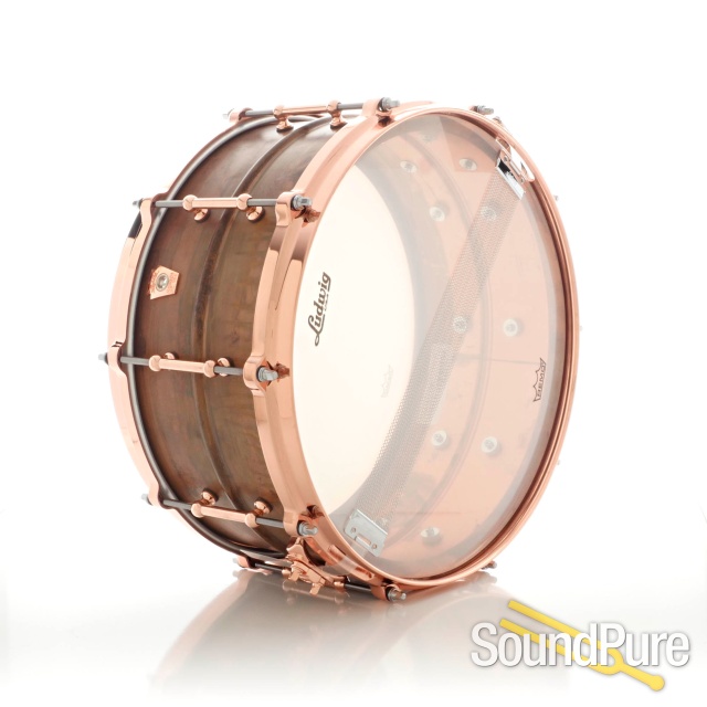 With close to a century of experience building copper timpani, the newest member to the Ludwig USA snare drum range is the Copper Phonic snare drum. This drum is fitted with imperial lugs and 2.3mm hoops, and the 6.5 x 14 copper shell is finished with a unique patina finish and copper plated hardware. Built to the same standards as Ludwig's Black Beauty, Supraphonic, and Bronze Phonic models, the Copper Phonic is a legend in the making.