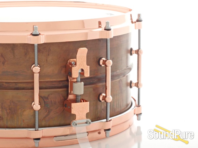 For the first time in 20 years, Ludwig has started using a 1.2mm shell and we can't think of a better use for it than on the Copperphonic series snares. The Copperphonic snares utilize the same copper that is used in their legendary timpani drums which they have been building for over 100 years and the results are nothing short of incredible. The patina copper shell delivers a focused and crisp tone but with a nice dryness, you won't find in any of the Ludwig metal snare drum offerings. Just like the legendary Black Beauty, the Copperphonic has its own signature sound that engineers and professionals can't deny. Whether you were looking to play rock or jazz this drum fits into place, staying responsive at all volume levels. Discover what happens when beauty and tone collide with the Copperphonic snare drum.