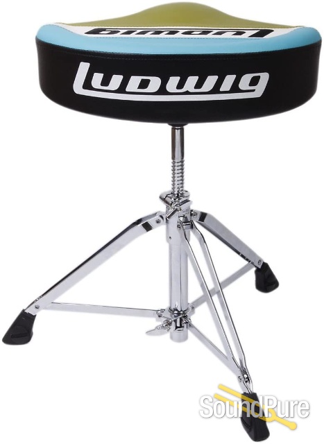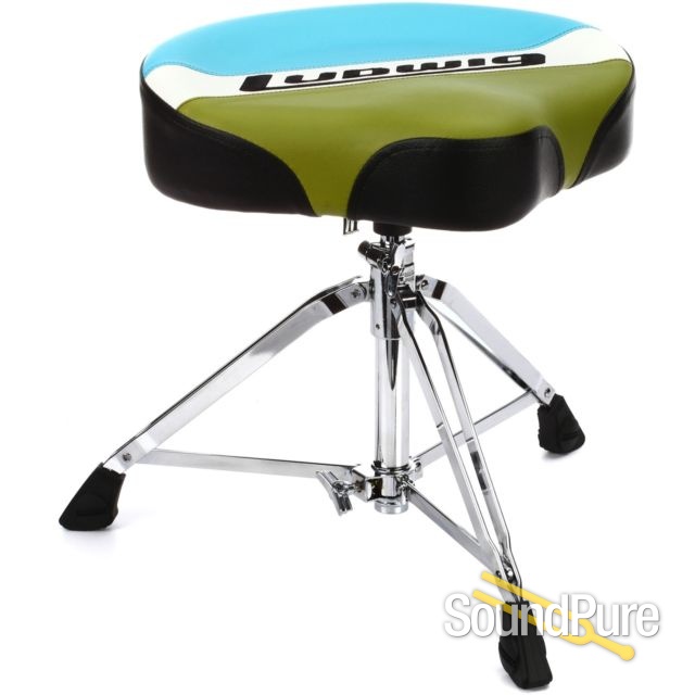 Ludwig's highest quality Saddle Drum Throne with Manual Spindle Height Adjuster and Double-braced Legs- Olive Green/Blue/Black