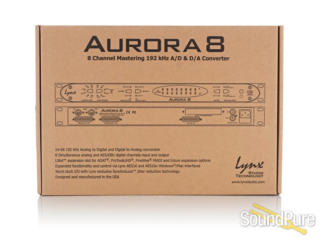 The Aurora™ line of digital audio converters from Lynx Studio Technology offers unprecedented audio quality and control in single-rack space eight and sixteen channel models. The Aurora 8™ and Aurora 16™ feature 192 kHz analog to digital and digital to analog conversion with front panel control of all routing and sample rate options. Extended functions in Aurora are accessible via computer with the Lynx AES16 or by infrared using compatible laptops and handheld Pocket PCs. The rear panel has Clock and MIDI In and Out connectors and an LSlot bay, for the optional use of other audio interfaces.