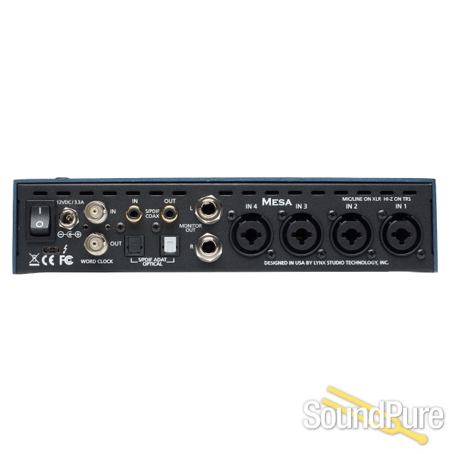 Mesa’s combo input connectors accept Mic, Line and D.I. signals, so users can plug in directly with instruments like electric guitars, bass, and keyboards, as well as microphones, and are selectable on a per-channel basis. Its monitor outputs are on ¼” balanced TRS connectors. Designed for professional applications, Mesa also features S/PDIF coaxial I/O, with its optical port supporting both S/PDIF (2 channel) and ADAT (8 channel) formats, and also includes Word Clock in and out.