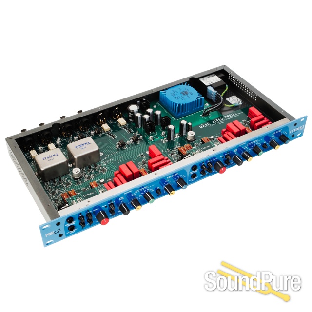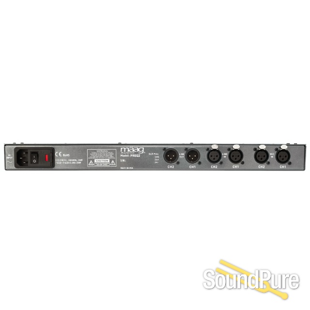The Maag Audio PREQ2™, Two World Class mic preamps with buffered Pass Thru, and level match technologies, set the stage for reamplification, and elevating your craft beyond 11! Mäag Audio’s newest creation is the PREQ2 Dual Mic Preamp with EQ, a complete analog system for either recording or mixing housed in a 1U standalone unit. It comes with Cliff Mäag’s venerable Air Band® shelving equalizer first introduced in 1993 with his NTI EQ3 equalizer. The PREQ2 will handle either line or microphone signal levels with two matched channels both with separate rear panel line level input and microphone XLR connectors and switchable +48-volt phantom powering. The rear panel also has XLR output connectors for each channel and a on/off/fuse mains switch. All switches on the PREQ2 have colorful LEDs to confirm their operation and all controls have detents with the exception of the continuously variable microphone gain.