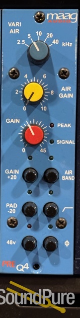 Presented in the flagship lunchbox® portable format, the PREQ4® offers the legendary AIR BAND®, 65dB adjustable gain, phase reverse capability, 70Hz high pass filter, +48V phantom power, and -20dB PAD. The Maag Audio PREQ4® is an official member of the VPR Alliance.