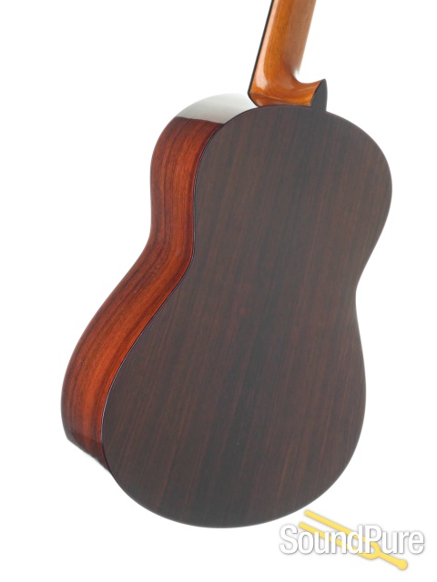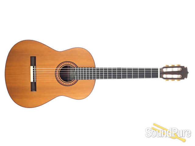 Classical guitar is an art form beyond regular guitar playing, and that translates over to guitar making. Western Red Cedar and Indian Rosewood come together with Marchione craftsmanship for a voice that is soft, woody and sustains for days. Overtones resonate beautifully and this guitar out of the case to us, plays BEAUTIFULLY. Our luthier didn't have to raise a finger! Treat yourself to one of the best voiced guitars we've seen in the shop, and don't miss this one!