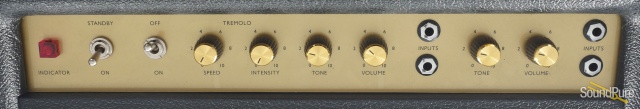 The 18 Watt 1974X is a re-issue of the fabled 1974 dual channel, all-valve combo, produced between 1966 and 1968. Just like the original, the 1974X is hand soldered, with an aluminum chassis, and has a valve-driven Tremolo circuit. Its two-channel design is straightforward and effective – just volume and tone controls on channel one and volume, tone, speed and sensitivity on the Tremolo channel.