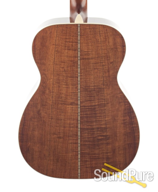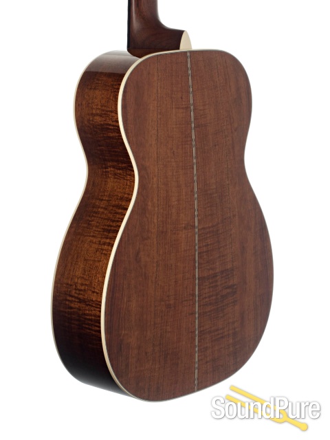 Stunning, high flame Koa on this punchy, perky little 00 from the fine folks at Martin. The Adirondack/Koa combination can be awfully bright in general but, either by design or being played in, this little sweetheart is clear and keen without any of the brittle, overbright bitey-ness in the highs that you might expect. If you're looking for a small guitar that has more to offer than thumpy midrange, this articulate little fellow is the way to go!
