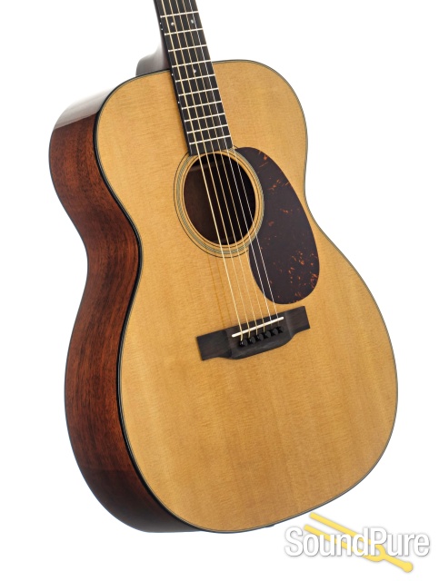 Carrying a distinct vintage-inspired design and updated like the D-18 a few years ago, the redesigned 000-18 offers many of the features found in our pre-war era guitars. The 000-18, which has a beautiful aging toned top in spruce, is married with genuine mahogany back and sides. The body is edged with black binding and complemented with a polished finish. The 24.9” short scale model’s neck features a modified low oval profile with Performing Artist taper, with a width of 1-3/4” at the nut and 2-5/32” string spacing for easy playability. Nickel open-geared tuners with butterbean knobs are found with a rosewood headplate, which displays a large old style Martin logo.