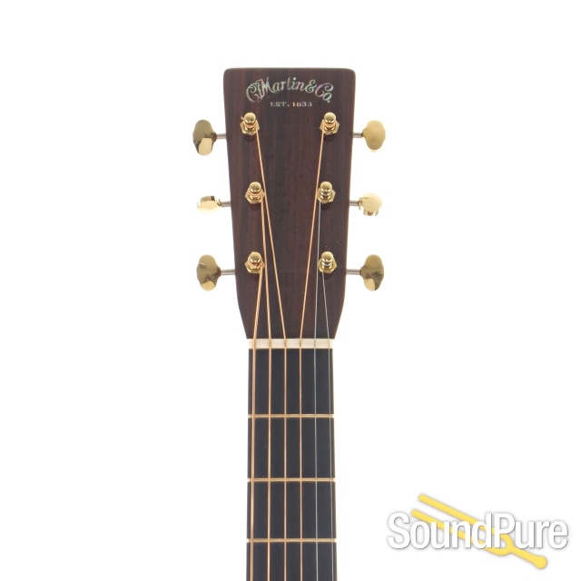 The 000-28 Modern Deluxe is packed with vintage appointments, custom features, and modern technology. A spruce VINTAGE TONE SYSTEM® (VTS) top, dovetail neck joint, and natural protein glue construction deliver the rich, fully-aged Martin tone that has inspired generations. European flamed maple binding, stylish gold frets, gold open-gear tuners, and a unique 1930s-style script logo inlaid in pearl on the headstock give it a look to match its sound. Ultra-modern features like Liquidmetal® bridge pins with red dots and a composite carbon fiber bridgeplate, boost volume, making this a guitar players dream. The 000-28 Modern Deluxe comes with a hardshell case and is strung with Martin Authentic Acoustic Lifespan® 2.0 light gauge strings.