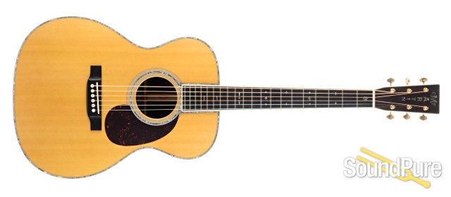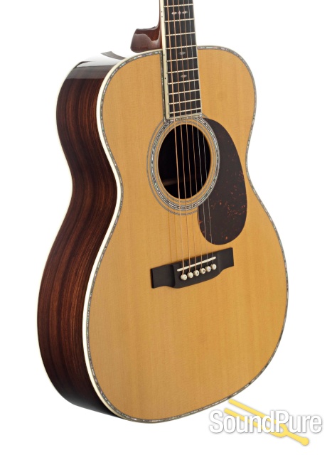 Score! This 000 is as beautifully clean as it is blingy with a rich, sonorous tone and fast playing, modernized neck profile to match. Our luthier did a touch up on the fret dress and a buff to the finish; neck angle, bridge stability, etc. are all where we all want 'em. You'd be hard pressed to find a better example of a top of the line, classic American acoustic build for fingerpickin' in style.