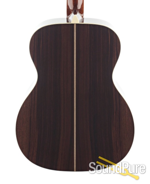 Score! This 000 is as beautifully clean as it is blingy with a rich, sonorous tone and fast playing, modernized neck profile to match. Our luthier did a touch up on the fret dress and a buff to the finish; neck angle, bridge stability, etc. are all where we all want 'em. You'd be hard pressed to find a better example of a top of the line, classic American acoustic build for fingerpickin' in style.