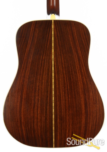 This guitar has had an earlier neck reset and refret by a Martin authorized repair shop before coming to us. The original nut was shimmed up and the saddle slot was relocated to correct intonation. The bridge plate has also been reinforced with a small ebony plate to counteract wear. Aesthetically this guitar is also in great shape with only a few dings on the top that you can see in the photos.
