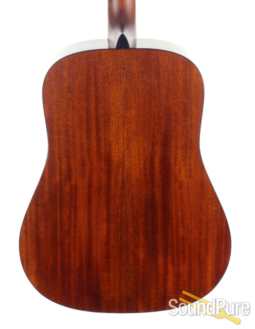 A truly ideal all-hog tone out of this one. The highs are sweet and sustaining, that midrange couldn't be warmer or throatier, and the bass is pleasantly tight and responsive (sometimes hog tops can leave the low end sounding a bit tubby, not so on this guy). A much, much warmer and darker voice than what you'd get from a Spruce-topped instrument. Singer-songwriters, Bluegrassers, alternate tuners, and more will find comfort and power in equal measures with this one!