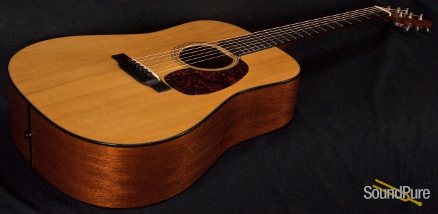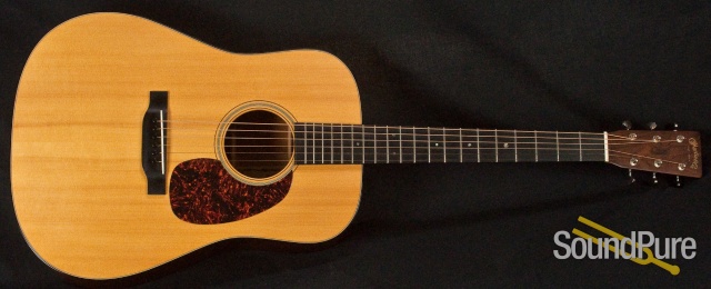 Every once and a while Martin comes out with a new model that captures the essence of the original and we find the D-18GE to be one of the great re-creations. The Adi top is responsive and stiff and has enough headroom to clear a skyscraper. Rather than the obtrusive and booming low-end you get out of rosewood dreads, this Mahogany back and sides carries a delicate balance and airiness to the overall tone. The midrange is a little more prominent here than in most large body guitars, and the traditional aesthetics are to die for. This is a guitar that will land in the hands of a purist, and they will love absolutely this piece.