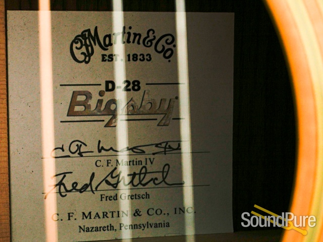 It's not often you partner with a rival guitar maker, but Martin and Gretsch have put "differences" aside to debut a second Merle Travis-inspired model that pays tribute to the Country Music Hall of Famer behind such songs as "Sixteen Tons" and the folk standard "Dark as a Dungeon," and the guitar he made famous in the late 1940s. Merle Travis is one of the most important guitar players of all time and is known for his unique playing style that is still known by guitarists today as “Travis Picking.” The D-28 Bigsby is built on the foundation of a newly reimagined D-28 (2017), and is crafted with East Indian rosewood. It features a maple high-performance taper neck fitted with the Bigsby headstock. The maple neck offers a unique tonal quality that adds sustain and brightness and pairs nicely with the warmth and depth of rosewood. The interior label is numbered and signed by Chris Martin IV and Fred Gretsch.