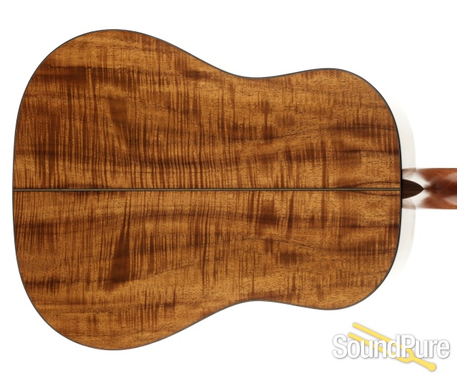This guitar embraced us like a bear hug from a good friend. Gorgeous Koa that has a ton of character provides a solid foundation for the spruce top to dance on. Mid-range that's present and almost vocal-like in quality. A strong resonant base that doesn't dissolve into mud in the mix.
