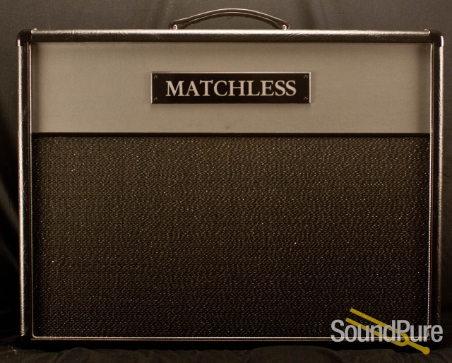 This amp was well taken care of! It is extremely rare that we get in a Matchless in this good of condition, and what a great amp this really is! EL84 power tubes provide plenty of chime and mids. The matching 2x12 cab offers a ton of surface area that really beefs up the bass qualities and overall, provides the full EQ spectrum very nicely.