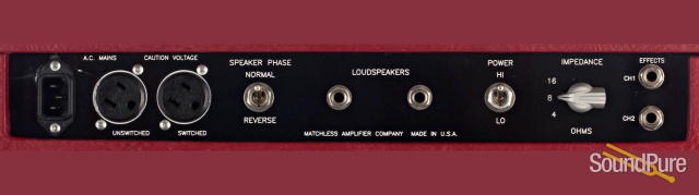 A long list of musician designed features includes: highly interactive tone controls and circuitries unique to each channel, bypassable master volume, individual channel effects loops, cut control for high frequency shaping, high and low (30 or 15 watt) power settings, selectable output impedance and phase inverter switches allow the use of additional speaker cabinets or amps in-phase with the DC-30.