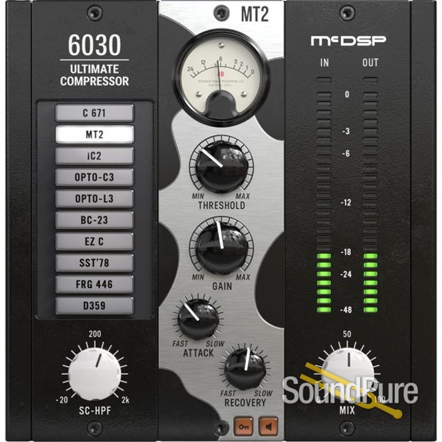 The 6030 Ultimate Compressor is the next generation of dynamic range control technology. Building from the entire McDSP compression algorithm code base, the 6030 adds new sonic capabilities, stunning new interfaces, and quality only McDSP could deliver. Using the popular module format, the 6030 Ultimate Compressor offers ten different compressors. All of these designs are by McDSP - some completely from the ground up, while others are emulations of existing gear with unique variations created by McDSP.