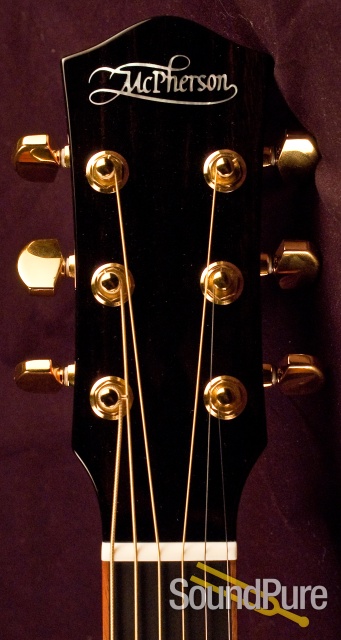 McPherson Guitars don't disappoint, and this extraordinary beauty is no exception. It features a remarkable Bear Claw Sitka Spuce top, with flamed Black Acacia backs and sides. The guitar is beautifully played by flat-picking legend, John Garris in the Sound Pure Recording Studios, and recorded using a simple minimalist microphone setup including the Earthworks SR40 Cardioid Microphones, and the Earthworks 1024 4-channel microphone preamp, feeding a Lynx Aurora 16 A/D converter. No special processing was done to make this recording. The guitar, and all the equipment used in making the recording are all available for purchase from Sound Pure. They can be reached toll free at 888-528-9703. The instrument specs include the following: Depth: 4" at block and 4.5" at tail block; Scale Length: 25"; Overall Length: 41" ;Neck Width: Standard 1 3/4" at nut, 2 5/32" at 12th; Neck Width: Wide 1 7/8" at nut, 2 5/32" at 12th; Electronics: L.R. Baggs RTS2 system. Ribbon transducer pick-up, pre-amp and volume control; Tuners: Schaller M6G Gold Tuning Machines; Gold Strap Button; Case: Custom fit Ameritage case with built in humidification system; Inlay: McPherson mother of pearl inlay on head cap and mirror image on bridge plate.