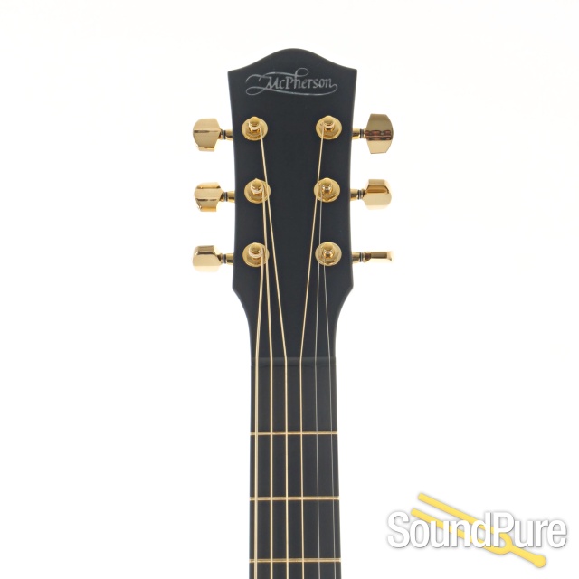 Believing that there is more to strive for out of flat-top acoustics, McPherson introduced their revolutionary Offset Soundhole Technology over three decades ago. This allows for greater vibration in the center of the guitar top, as well as more volume and clarity in the ears of the player. Their unique bracing system also creates a larger, more even space for the top to vibrate, increasing the clarity and projection of sound. Every McPherson guitar features a cantilevered neck, which means that the fretboard does not actually make contact with the guitar top. This design allows the space underneath the fretboard to vibrate, again contributing to a larger area of flexible surface on the top. McPherson guitars also offer an enormous selection of tonewoods, from the classic Spruce, Rosewood, and Mahogany varieties to the rare and exotic. Some of the less common tonewoods like Acacia, Cocobolo, Walnut, Pau Rosa, Macassar Ebony, and others can be combined in interested ways to make very unique sounding instruments. While many of the advancements McPherson has made in acoustic guitar building result in superior tone, sustain, and resonance, McPhersons are also far less susceptible to damage than their “Golden Era” counterparts. Every McPherson neck is fitted with a carbon graphite truss rod in a triangulated system that is so stable that it eliminates the need for neck adjustment. If you are looking for an acoustic guitar that is more than just a replica, look no further than McPherson Guitars. In 50 years, they might be the ones being replicated.