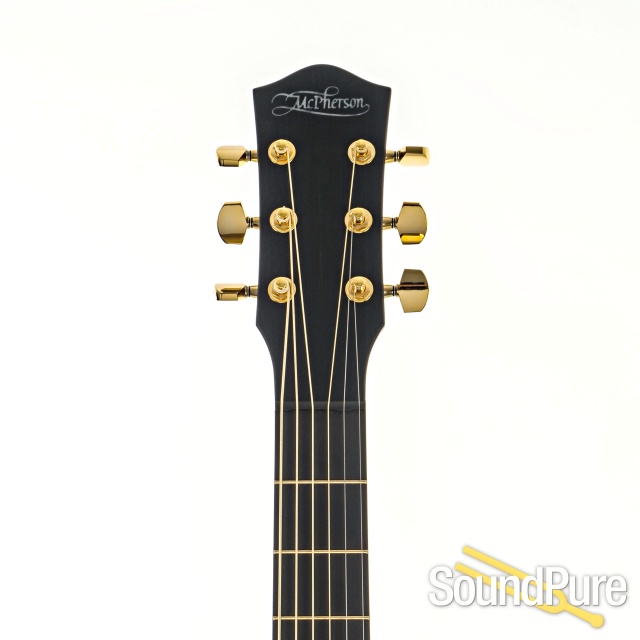 Believing that there is more to strive for out of flat-top acoustics, McPherson introduced their revolutionary Offset Soundhole Technology over three decades ago. This allows for greater vibration in the center of the guitar top, as well as more volume and clarity in the ears of the player. Their unique bracing system also creates a larger, more even space for the top to vibrate, increasing the clarity and projection of sound. Every McPherson guitar features a cantilevered neck, which means that the fretboard does not actually make contact with the guitar top. This design allows the space underneath the fretboard to vibrate, again contributing to a larger area of flexible surface on the top. McPherson guitars also offer an enormous selection of tonewoods, from the classic Spruce, Rosewood, and Mahogany varieties to the rare and exotic. Some of the less common tonewoods like Acacia, Cocobolo, Walnut, Pau Rosa, Macassar Ebony, and others can be combined in interested ways to make very unique sounding instruments. While many of the advancements McPherson has made in acoustic guitar building result in superior tone, sustain, and resonance, McPhersons are also far less susceptible to damage than their “Golden Era” counterparts. Every McPherson neck is fitted with a carbon graphite truss rod in a triangulated system that is so stable that it eliminates the need for neck adjustment. If you are looking for an acoustic guitar that is more than just a replica, look no further than McPherson Guitars. In 50 years, they might be the ones being replicated.