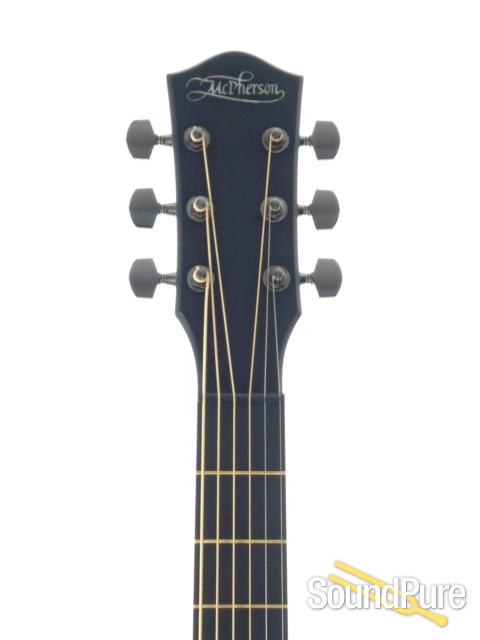Believing that there is more to strive for out of flat-top acoustics, McPherson introduced their revolutionary Offset Soundhole Technology over three decades ago. This allows for greater vibration in the center of the guitar top, as well as more volume and clarity in the ears of the player. Their unique bracing system also creates a larger, more even space for the top to vibrate, increasing the clarity and projection of sound. Every McPherson guitar features a cantilevered neck, which means that the fretboard does not actually make contact with the guitar top. This design allows the space underneath the fretboard to vibrate, again contributing to a larger area of flexible surface on the top. McPherson guitars also offer an enormous selection of tonewoods, from the classic Spruce, Rosewood, and Mahogany varieties to the rare and exotic. Some of the less common tonewoods like Acacia, Cocobolo, Walnut, Pau Rosa, Macassar Ebony, and others can be combined in interested ways to make very unique sounding instruments. While many of the advancements McPherson has made in acoustic guitar building result in superior tone, sustain, and resonance, McPhersons are also far less susceptible to damage than their “Golden Era” counterparts. Every McPherson neck is fitted with a carbon graphite truss rod in a triangulated system that is so stable that it eliminates the need for neck adjustment. If you are looking for an acoustic guitar that is more than just a replica, look no further than McPherson Guitars. In 50 years, they might be the ones being replicated.