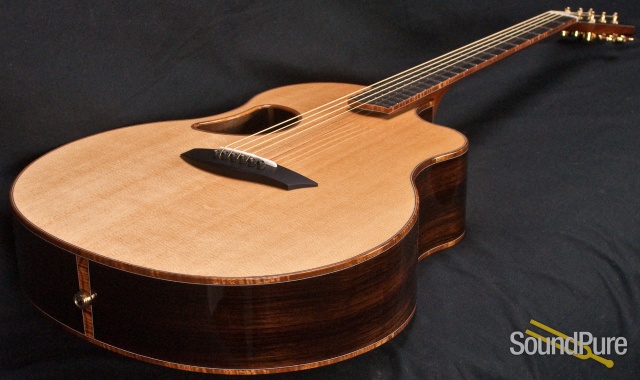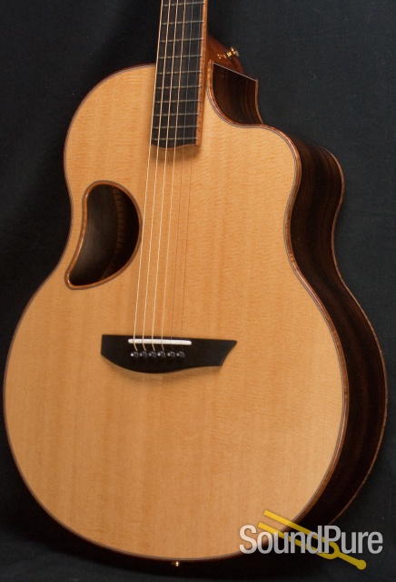 Weird for the sake of weird? A passing fad in guitar design? These were my first impressions when I opened the case. A few moments and a couple of chords later and I'm ready to send off a signed apology to the folks at McPherson--how dare I doubt these instruments! Few makers can boast this level of balance and sophistication in their work. I have never played a guitar with such rock-solid intonation, from the first fret up to the teenths. I've heard it said before around the office and I can promise you it's true--McPherson's sound like they contain a tiny army of sound engineers scrutinizing and EQing every single note you play! But the tone is worlds away from sterile and dry. The Sitka/Rosewood combo on this particular model brings great color and articulation to the highs and lows and an even scooped quality to the mids. The sheer absence of cross-frequency noise makes other guitars sound downright messy. The satin neck and cutaway can be regarded with equal reverence--playability has been handled just as carefully and masterfully as the sonic qualities of the instrument. Still have your doubts? Call us up and get it in your hands today!