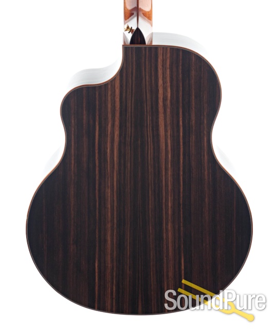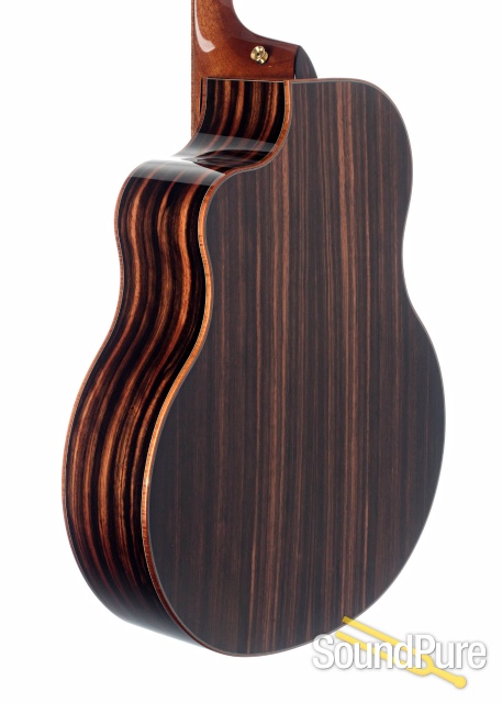 A clear and balanced guitar that can handle a variety of playing styles. The gorgeous macassar ebony back and sides provide plenty of volume and shimmer, pairing beautifully with the sweet, sensitive engelmann. Responds really well to fingerpicking and strumming alike. This is a guitar that definitely lives up to the hype!