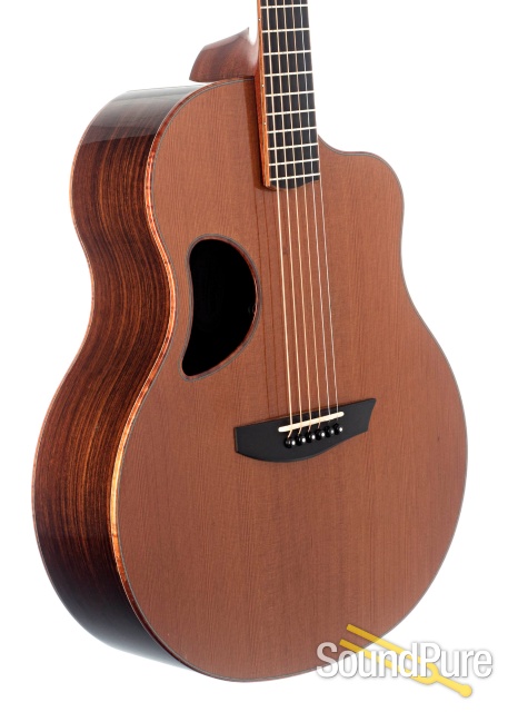 Believing that there is more to strive for out of flat-top acoustics, McPherson introduced their revolutionary Offset Soundhole Technology over three decades ago. This allows for greater vibration in the center of the guitar top, as well as more volume and clarity in the ears of the player. Their unique bracing system also creates a larger, more even space for the top to vibrate, increasing the clarity and projection of sound. Every McPherson guitar features a cantilevered neck, which means that the fretboard does not actually make contact with the guitar top. This design allows the space underneath the fretboard to vibrate, again contributing to a larger area of flexible surface on the top. McPherson guitars also offer an enormous selection of tonewoods, from the classic Spruce, Rosewood, and Mahogany varieties to the rare and exotic. Some of the less common tonewoods like Acacia, Cocobolo, Walnut, Pau Rosa, Macassar Ebony, and others can be combined in interested ways to make very unique sounding instruments. While many of the advancements McPherson has made in acoustic guitar building result in superior tone, sustain, and resonance, McPhersons are also far less susceptible to damage than their “Golden Era” counterparts. Every McPherson neck is fitted with a carbon graphite truss rod in a triangulated system that is so stable that it eliminates the need for neck adjustment. If you are looking for an acoustic guitar that is more than just a replica, look no further than McPherson Guitars. In 50 years, they might be the ones being replicated.