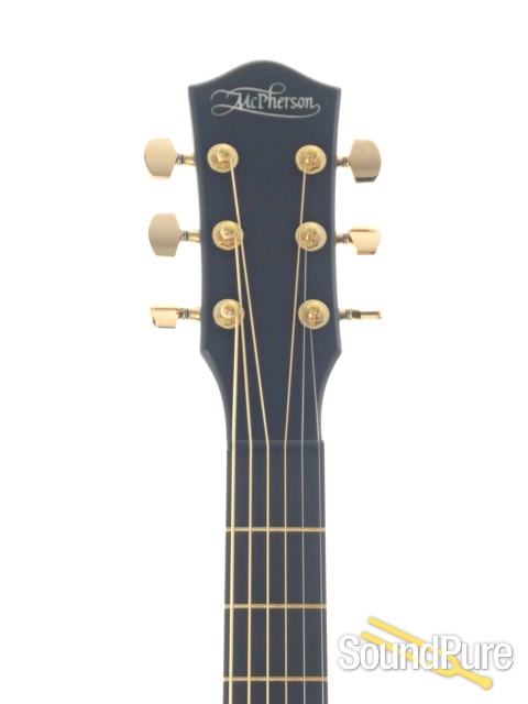 Believing that there is more to strive for out of flat-top acoustics, McPherson introduced their revolutionary Offset Soundhole Technology over three decades ago. This allows for greater vibration in the center of the guitar top, as well as more volume and clarity in the ears of the player. Their unique bracing system also creates a larger, more even space for the top to vibrate, increasing the clarity and projection of sound. Every McPherson guitar features a cantilevered neck, which means that the fretboard does not actually make contact with the guitar top. This design allows the space underneath the fretboard to vibrate, again contributing to a larger area of flexible surface on the top. McPherson guitars also offer an enormous selection of tonewoods, from the classic Spruce, Rosewood, and Mahogany varieties to the rare and exotic. Some of the less common tonewoods like Acacia, Cocobolo, Walnut, Pau Rosa, Macassar Ebony, and others can be combined in interested ways to make very unique sounding instruments. While many of the advancements McPherson has made in acoustic guitar building result in superior tone, sustain, and resonance, McPhersons are also far less susceptible to damage than their “Golden Era” counterparts. Every McPherson neck is fitted with a carbon graphite truss rod in a triangulated system that is so stable that it eliminates the need for neck adjustment. If you are looking for an acoustic guitar that is more than just a replica, look no further than McPherson Guitars. In 50 years, they might be the ones being replicated.