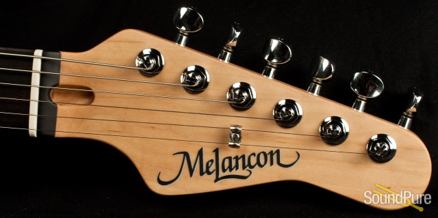 This T-style guitar is a hybrid to be reckoned with! Many guitar players are putting TV Jones pickups in their tele's. Melancon offers a true contender in the modified, boutique tele catagory with seperate master volume controls for each pickup and a bigsby tremolo bridge. Gerard's hand-selected AAAAA flamed maple tops are down right stunning!