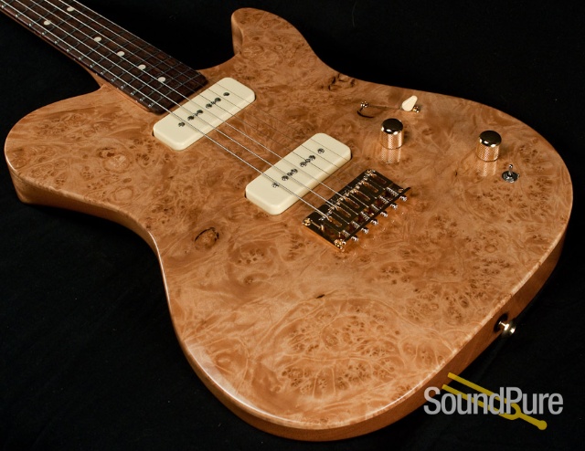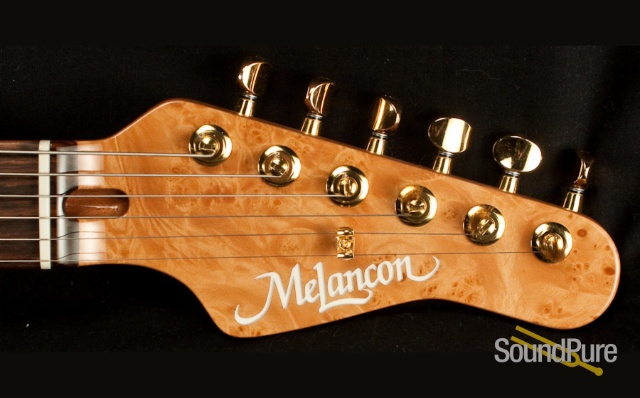Melancon continues to make stunning boutique had-carved guitars! You will get lost in the burled maple top for days! Matching headstock is a very nice touch.