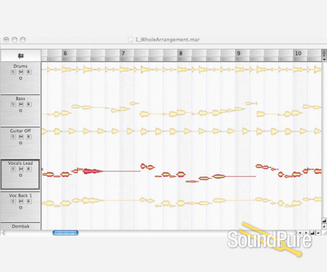 Track-transcending macros: Intelligent macros let you enhance or perfect simultaneously the intonation, timing and dynamics of any selection of notes on any number of tracks.